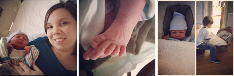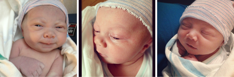 They weighed him at 8 lbs 2.6 ounces and 21 3/4 inches long (which we found out at his first checkup was wrong. He was only 20 inches…). He was awake and breathing and completely healthy.
