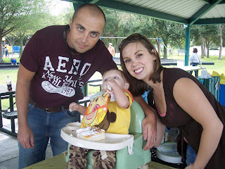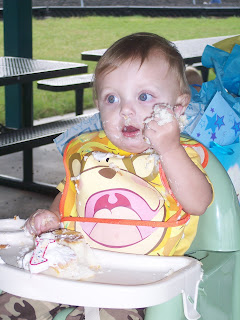 Noah had his very FIRST 1st birthday party today. We went to the local park and had cake and chips and dip with my parents and sister, and some friends from church and Josh’s work. The rain came in last night and cooled everything off, so it was in the low to mid-60’s today. It was a little bit chilly, but a really fun day at the park. Here are just a few of the pictures from today. My sister and my mom took a pile on their camera, so I will add some more of them later.