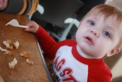 Anywho. We had a great time. We met up with one of the guys that Hubby works with, his wife & their two little girls. Little Man made fast friends with his 2 kids. They provided high quality entertainment for him all afternoon. Surprisingly enough, Little Man didn’t really get ill until halfway through supper last night. He didn’t nap all afternoon, so it was a big shock that he was so well behaved. We ate steak at Longhorn, took lots of photos with my new camera & spent the day with the loves of my life. What more could I ask for for Valentines Day?