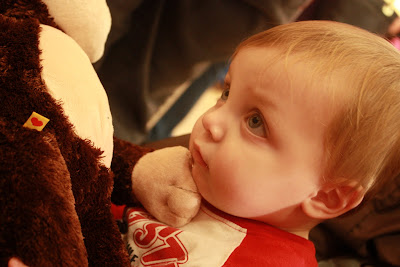 Yesterday we celebrated our Valentines Day {thanks to the fact that the Daytona 500 comes on today and the world stops for Nascar…haha. Kidding. But, no seriously}. We took Little Man to the International Plaza in Tampa to the Build-A-Bear workshop. We took him when he was 6 months old, but he really didn’t get it. We were going to buy him an Elephant, name him Big Al and put Little Man’s Alabama football jersey that he’s outgrown on him. BUT…they didn’t have the Elephant. Turns out they have discontinued the Elephant in all 50 states except Alabama. Surprise, surprise. So instead, we settled on a monkey. We named him George. Original, right?