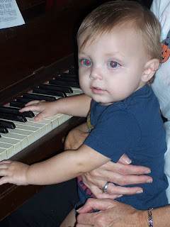 Playing Piano with his Grandmommy [Hubby’s Mom]. Sorry about the Red Eye. Been trying to remove it, but I can’t seem to get all of it.